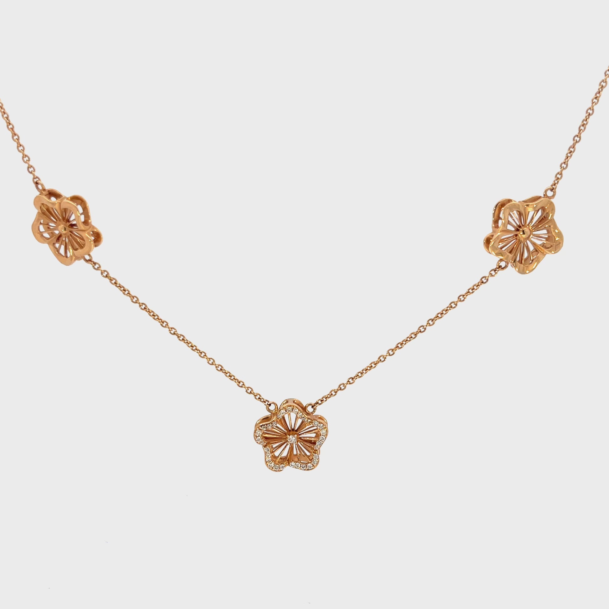 This exquisite necklace features delicate floral pendants crafted in gold, each adorned with intricate detailing. The elegant design is perfect for adding a touch of sophistication to any outfit, making it an ideal choice for both casual and formal occasions.