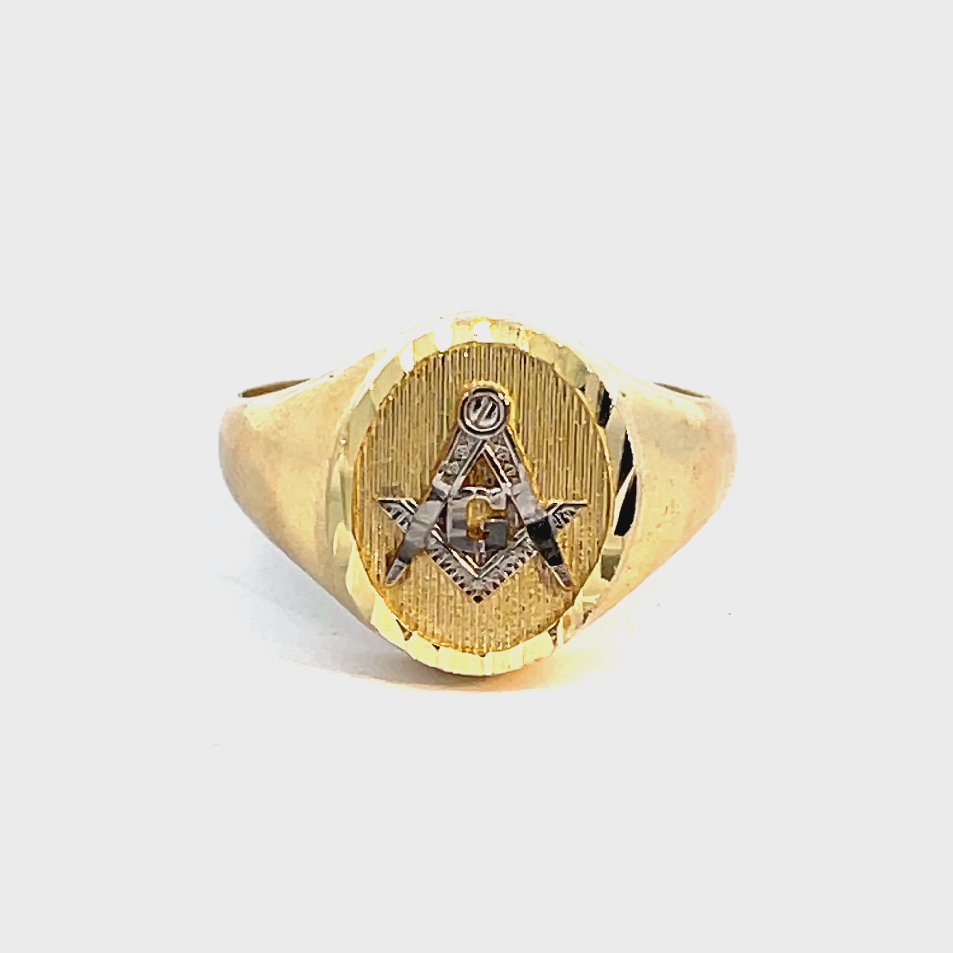 This exquisite gold ring features a beautifully crafted Masonic emblem, symbolizing tradition and elegance. Its polished finish and intricate detailing make it a standout piece for any occasion, perfect for those who appreciate fine craftsmanship and heritage.