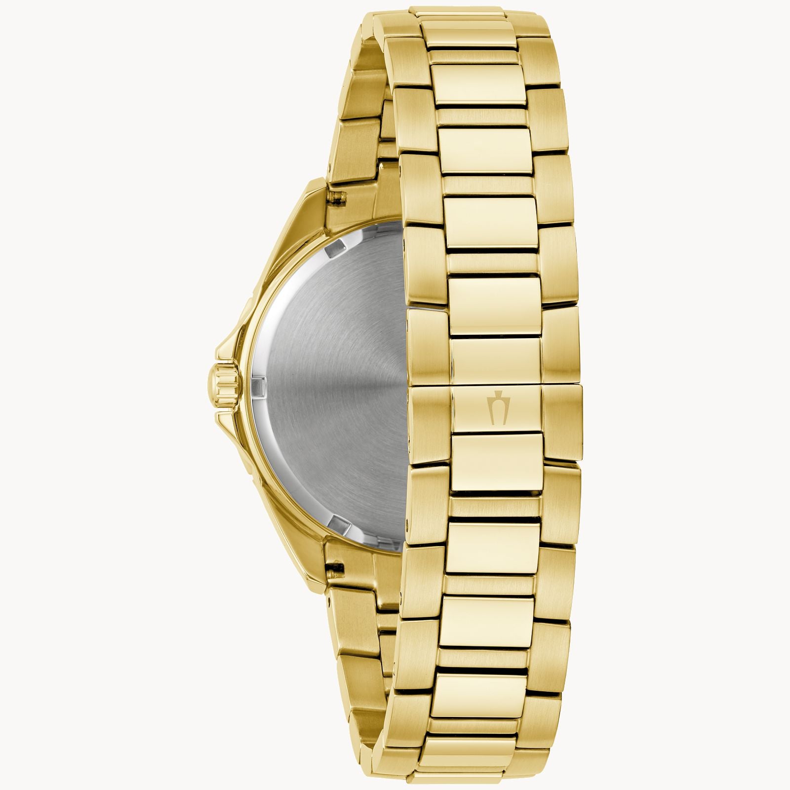 For the bold and daring of spirit and style, Bulova introduces the opulently embellished men’s Phantom timepiece from the Crystal collection. The magnificent gold-tone stainless steel case is set with a rainbow of colorful crystals around the bezel that dazzles in the light. The champagne dial features gold-tone hands and provides even more glamour, with crystal-set hour markers to match the bezel and a richly textured crystal golden shadow pavé at the center. A matching gold-tone stainless steel bracelet offers a deployant closure. For life’s extravagant days, the new men’s Bulova Phantom from the Crystal collection is there to make a splash.